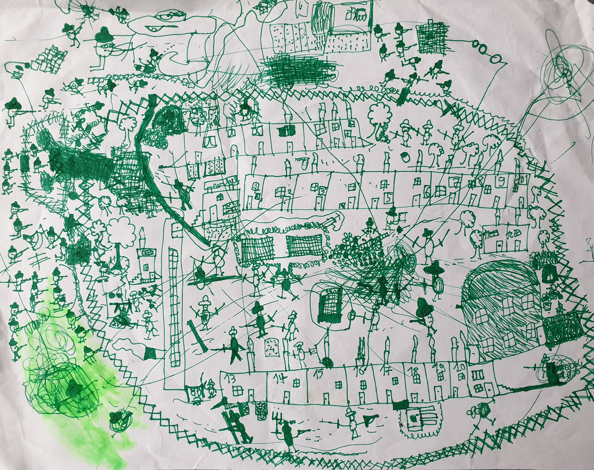 Drawings I made as a child — each evening, a story that grew as I was drawing.